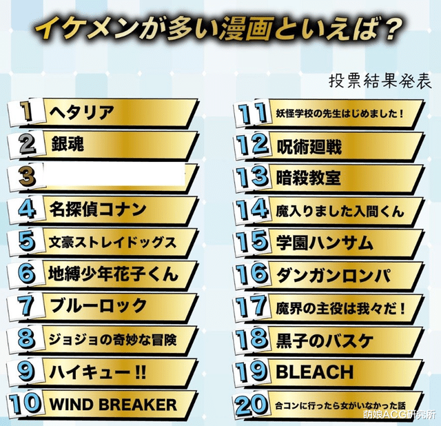 这说念问题要是出刻下更阑聊天室,90%会激励一场白色恐怖的颜值战。而此次,日本就搞了个大当作,搞了一波“帅哥最多的动漫作品Top20”投票榜单,不评剧情、不管评分——只看帅哥密度。