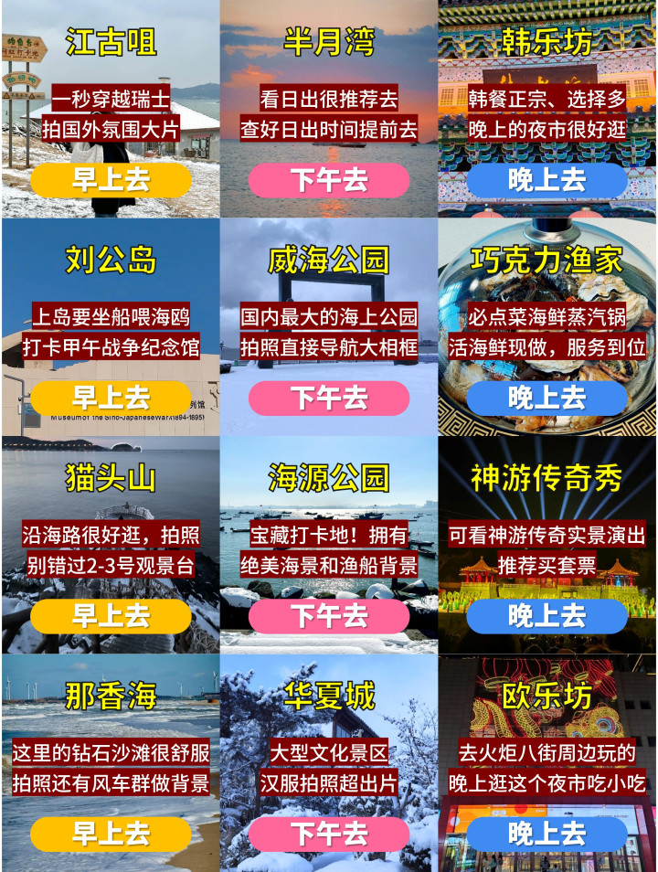 2、威海有两个火车站,威海站和威海北站,威海站集结韩乐坊,威海北站离海外海水浴场、火把八街更近少许