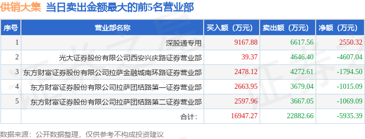 证券之星音信,沪深往复所2024年11月12日公布的往复公开信息知道,供销大集(000564)因日振幅值达到15%的前5只证券,日涨幅偏离值达到7%的前5只证券登上龙虎榜。这次是近5个往异日内第3次上榜。