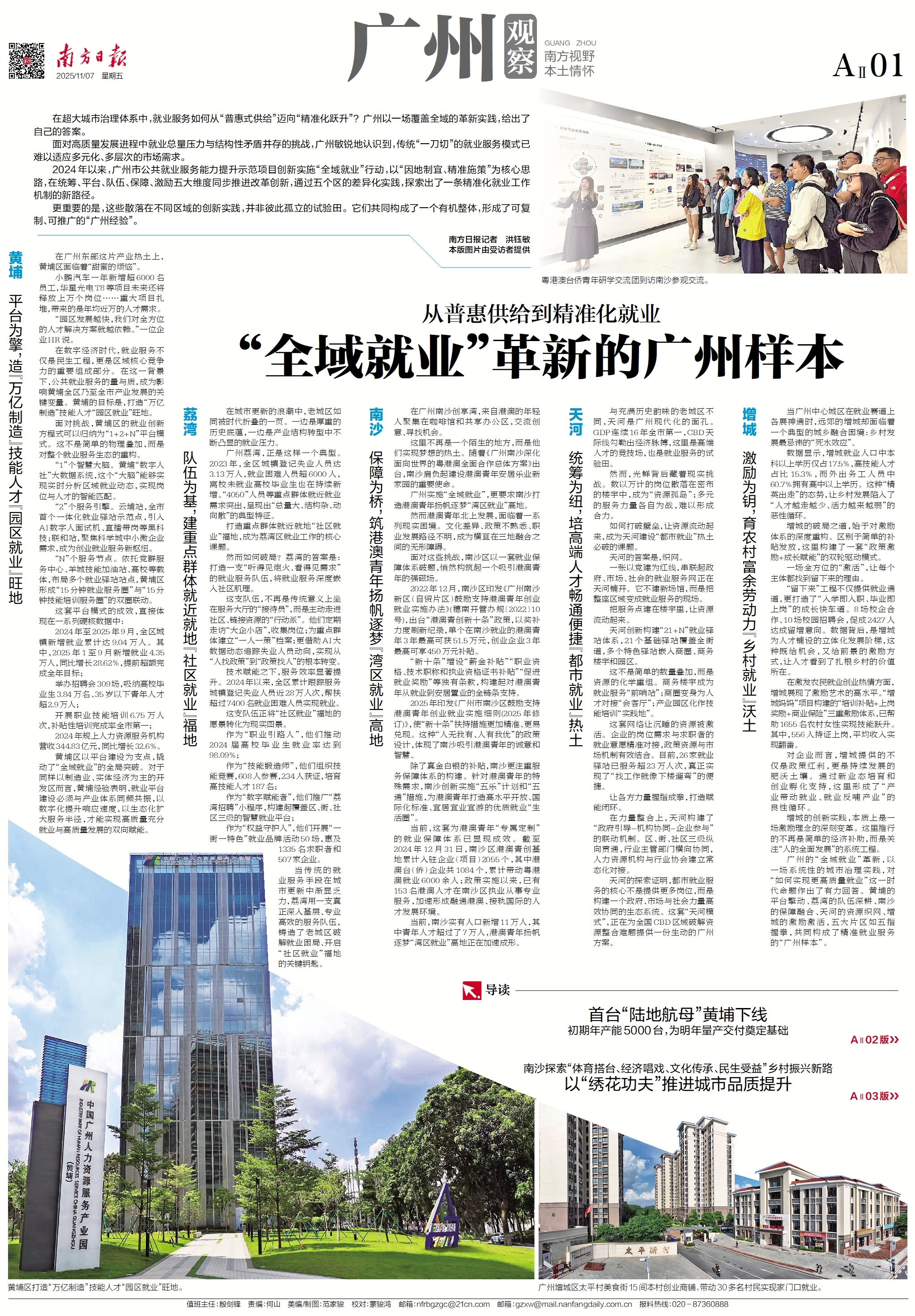 广州的“全域做事”鼎新,以一场系统性的城市治理实践,对“若何实现更高质地做事”这一时间命题作出了有劲回复。黄埔的平台擎动、荔湾的队列深耕、南沙的保障和会、河汉的资源织网、增城的激励激活,五大片区如五指持拳,共同组成了精确做事服务的“广州样本”。