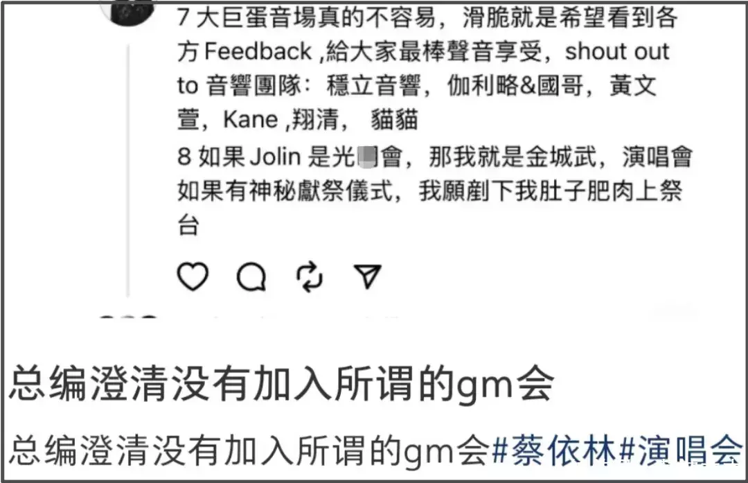 蔡依林演唱会主持方发布声明针对的即是以上传言,演唱会总编也站出来否定蔡依林加入了某明会,演唱会更不波及任何典礼。