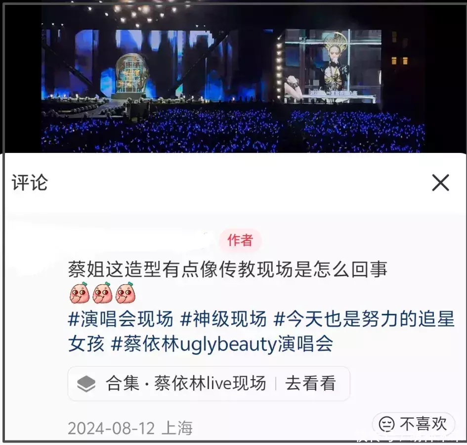 实质上,蔡依林不是第一次被质疑演唱会含有宗教元素了,早在2024年,去过蔡依林演唱会现场的网友就有所察觉,发了动态感触蔡依林的造型大略布道现场。