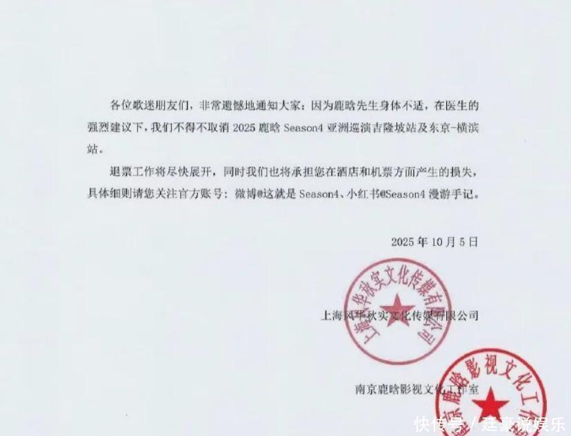 使命室给出的取消原因是鹿晗身体不适,在医陌生远下不得不取消。